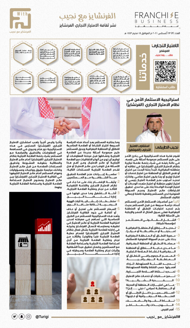 استراتيجية الاستثمار الأمن في نظام الامتياز التجاري ( الفرنشايز ) Franchise Business2022-07-12T11:30:43+00:00 يوليو 12, 2022By Franchise Businessالمكتبة المطبوعة0 Comments Read more...